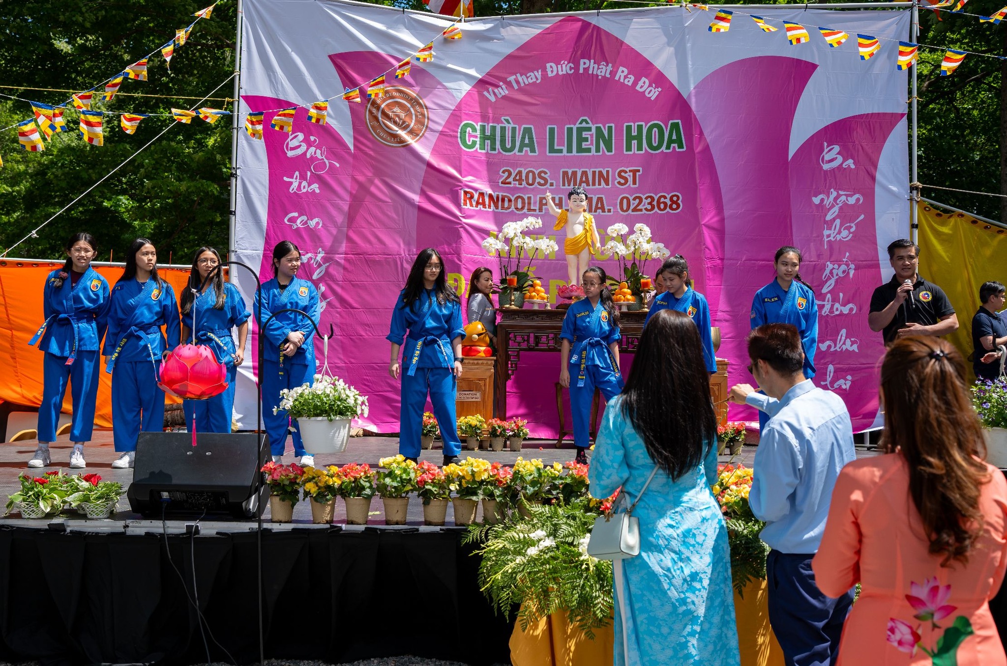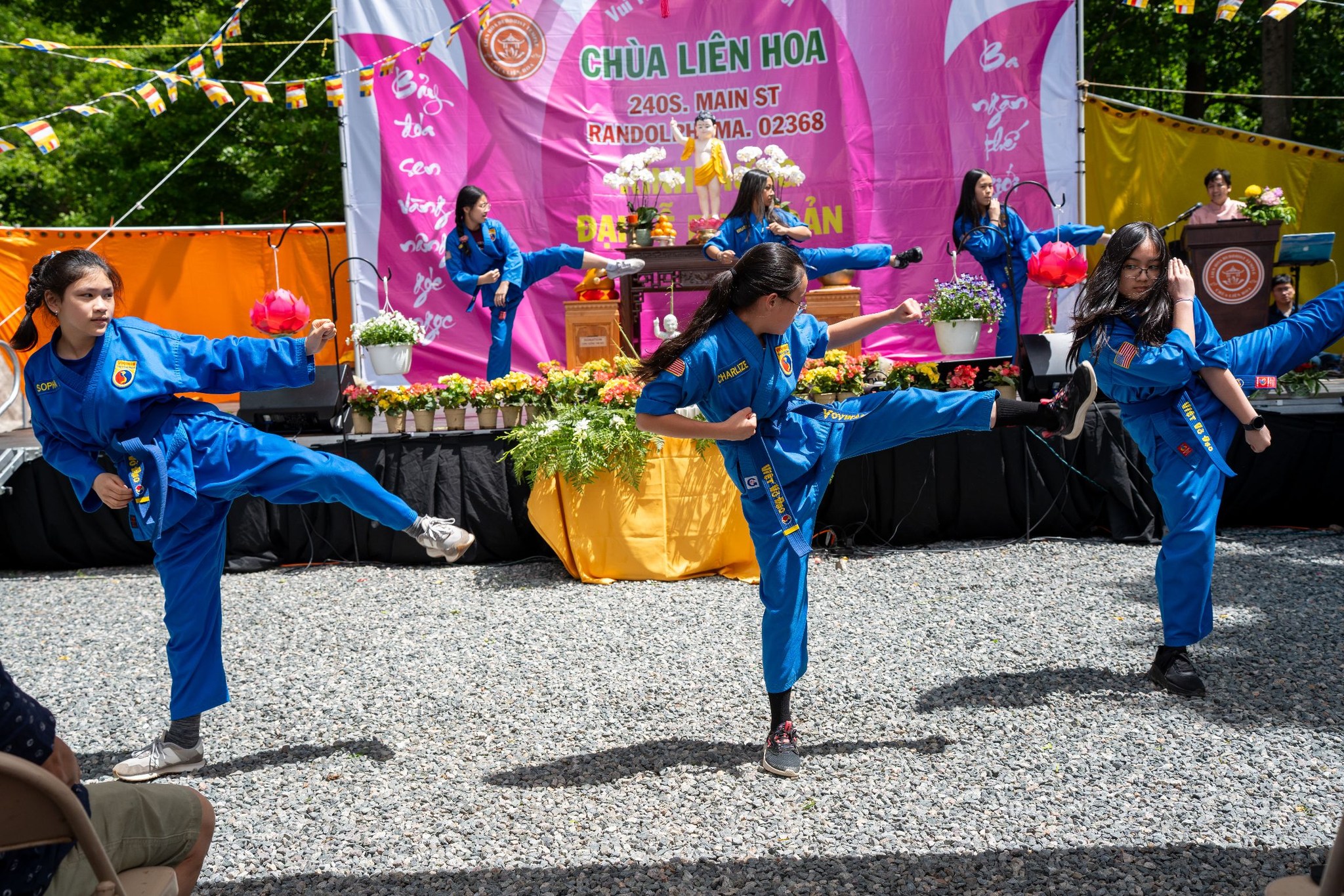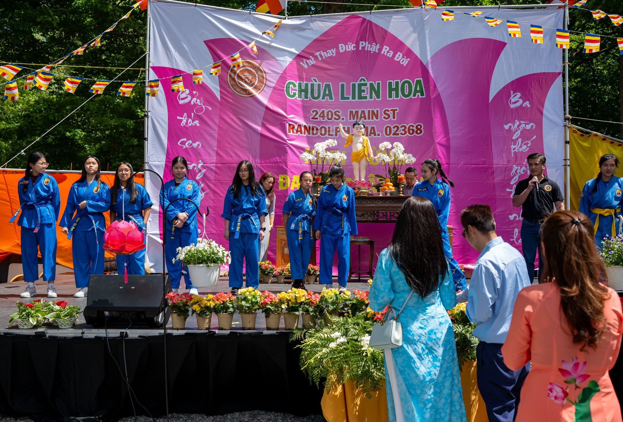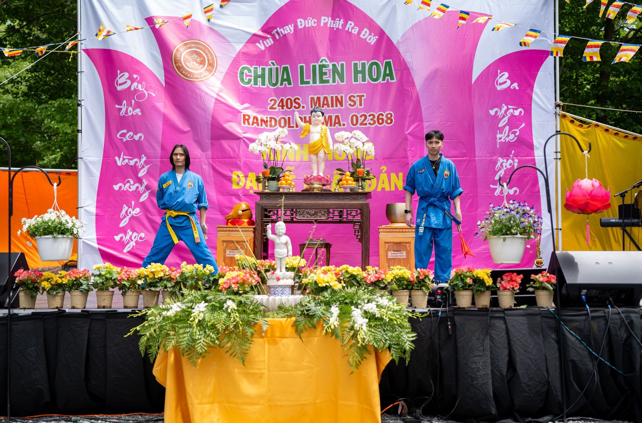 At the invitation of Venerable Nun Như Nguyệt, the abbot of Liên Hoa Pagoda in Randolph, Massachusetts, students from the Vovinam Việt Võ Đạo Massachusetts Academy came today to perform in celebration of the 2649th Buddha’s Birthday.