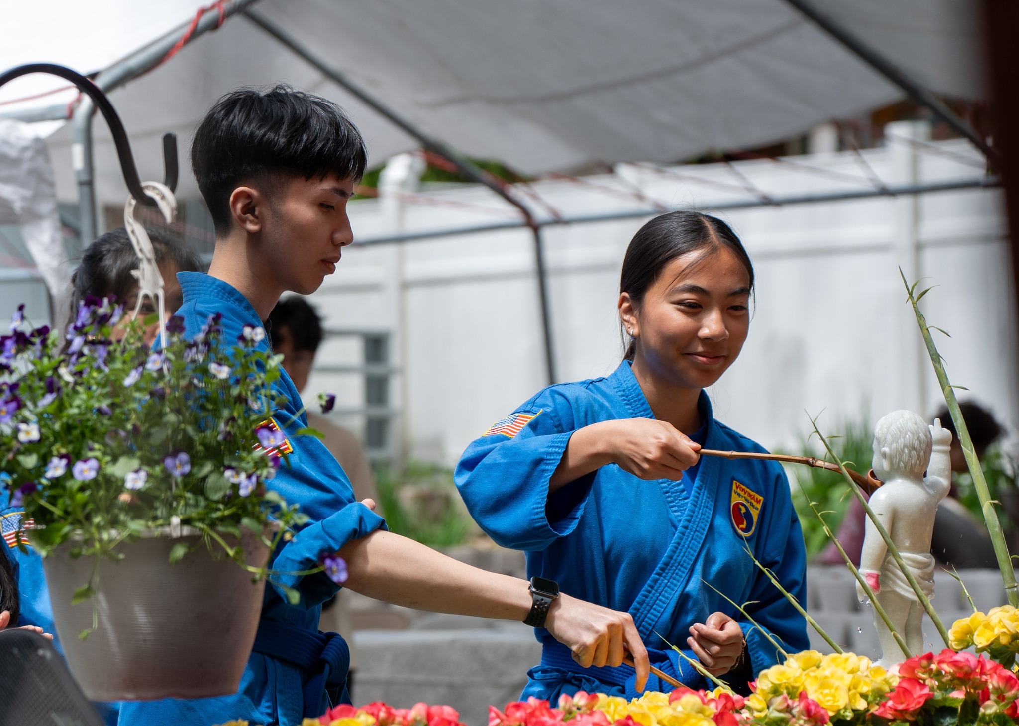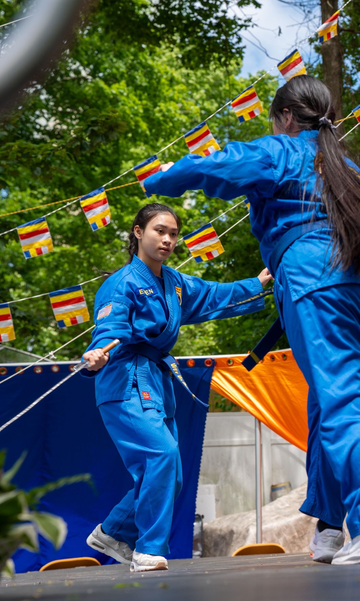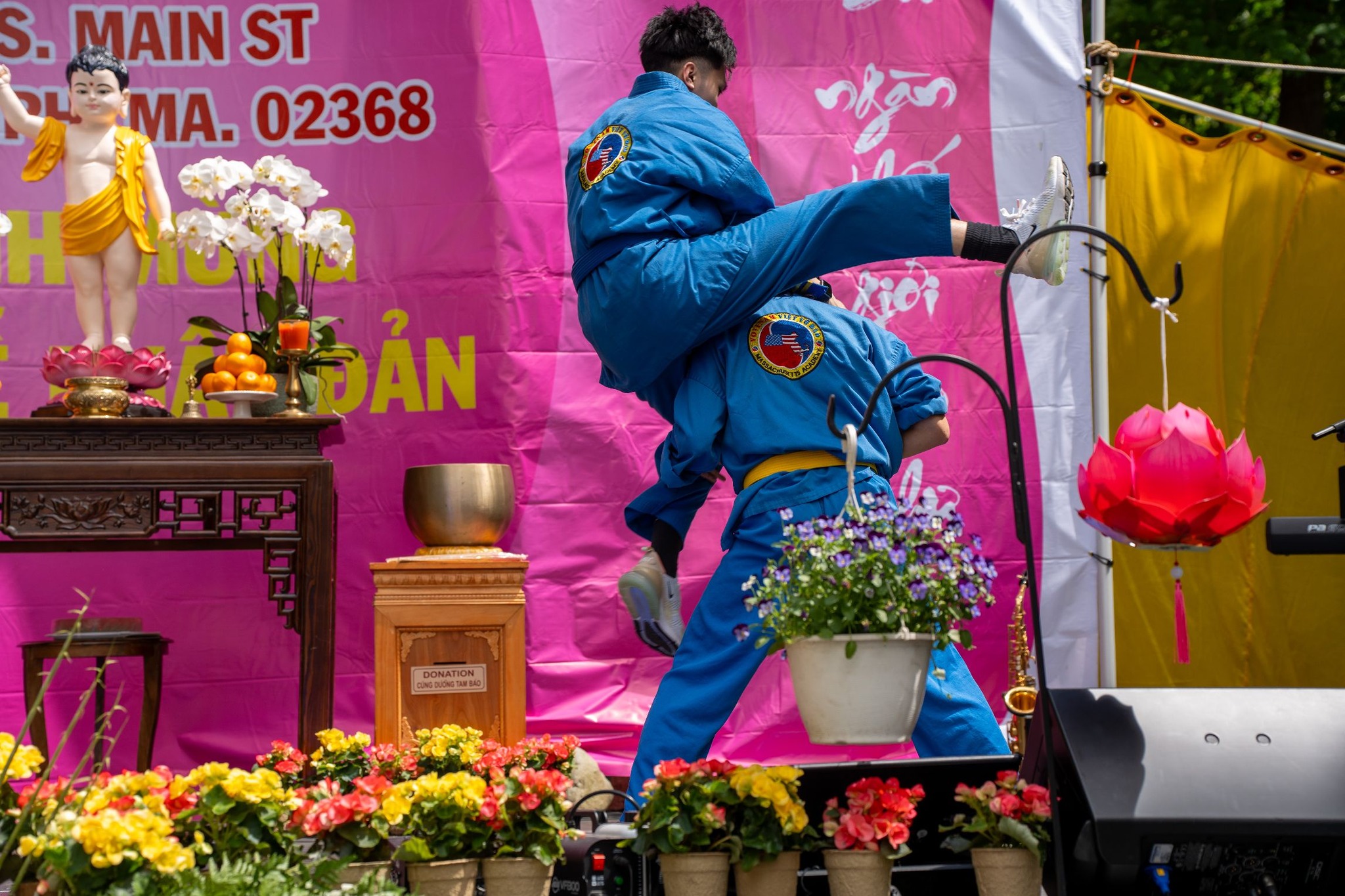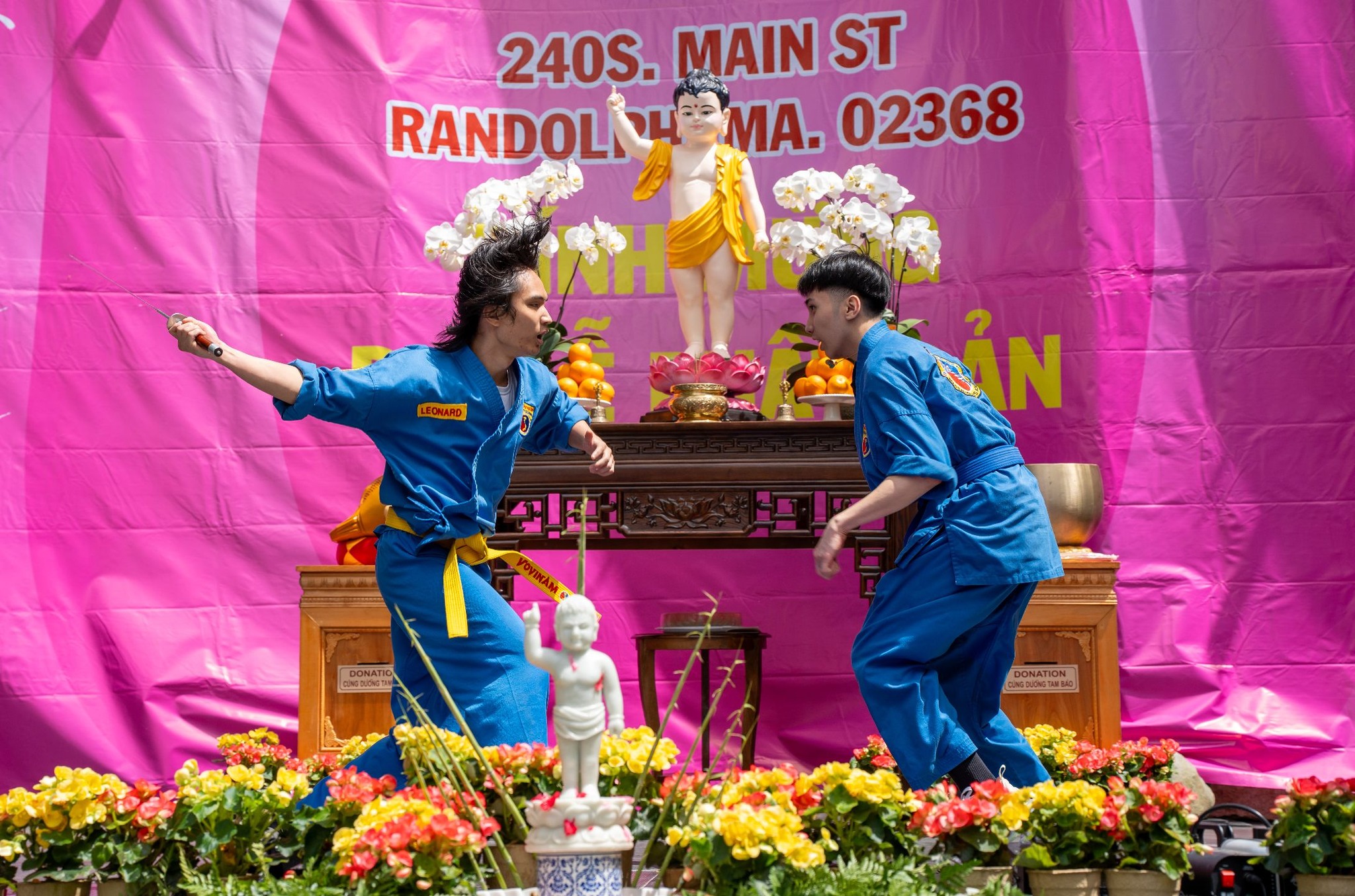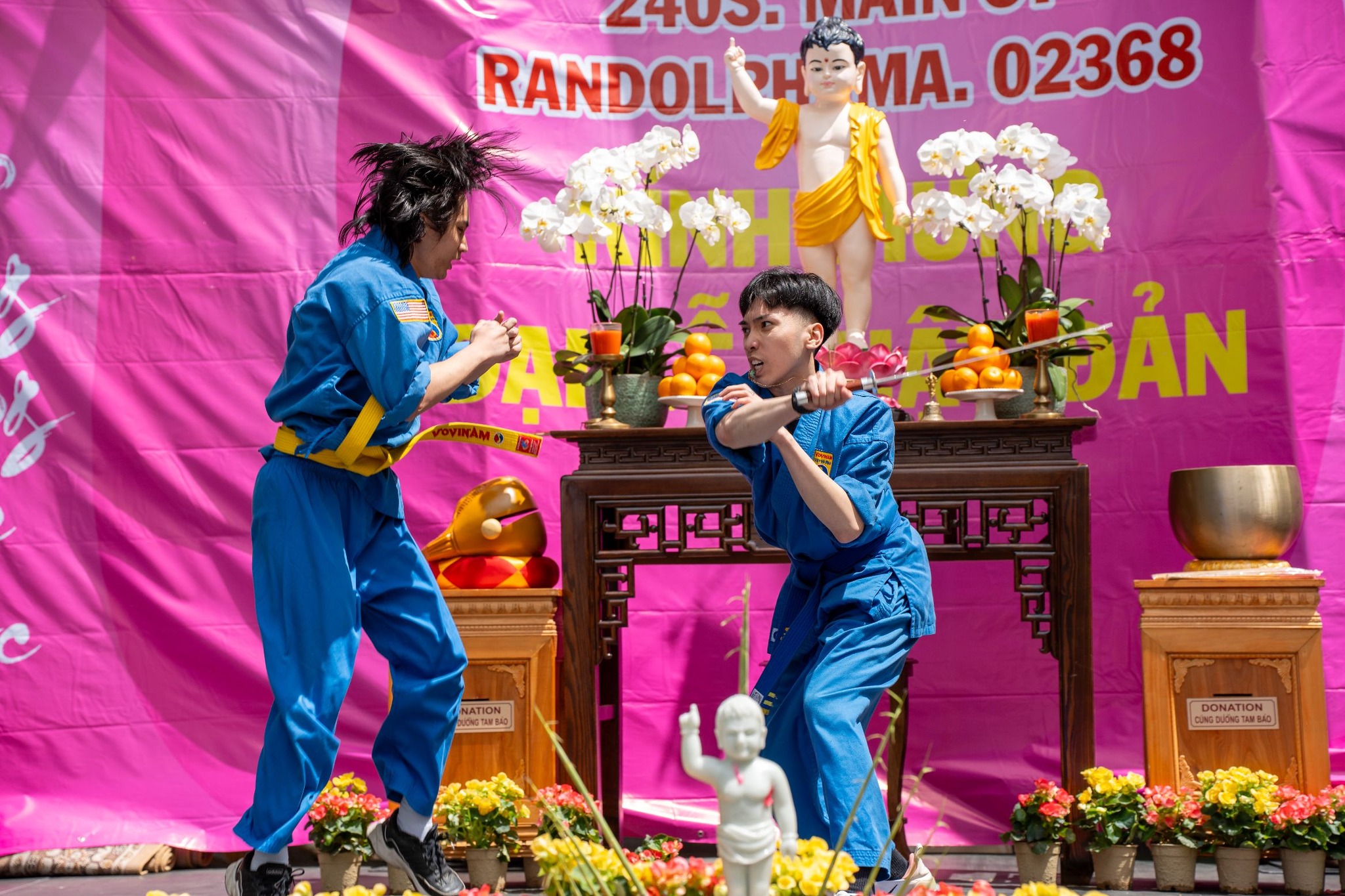 At the invitation of Venerable Nun Như Nguyệt, the abbot of Liên Hoa Pagoda in Randolph, Massachusetts, students from the Vovinam Việt Võ Đạo Massachusetts Academy came today to perform in celebration of the 2649th Buddha’s Birthday.