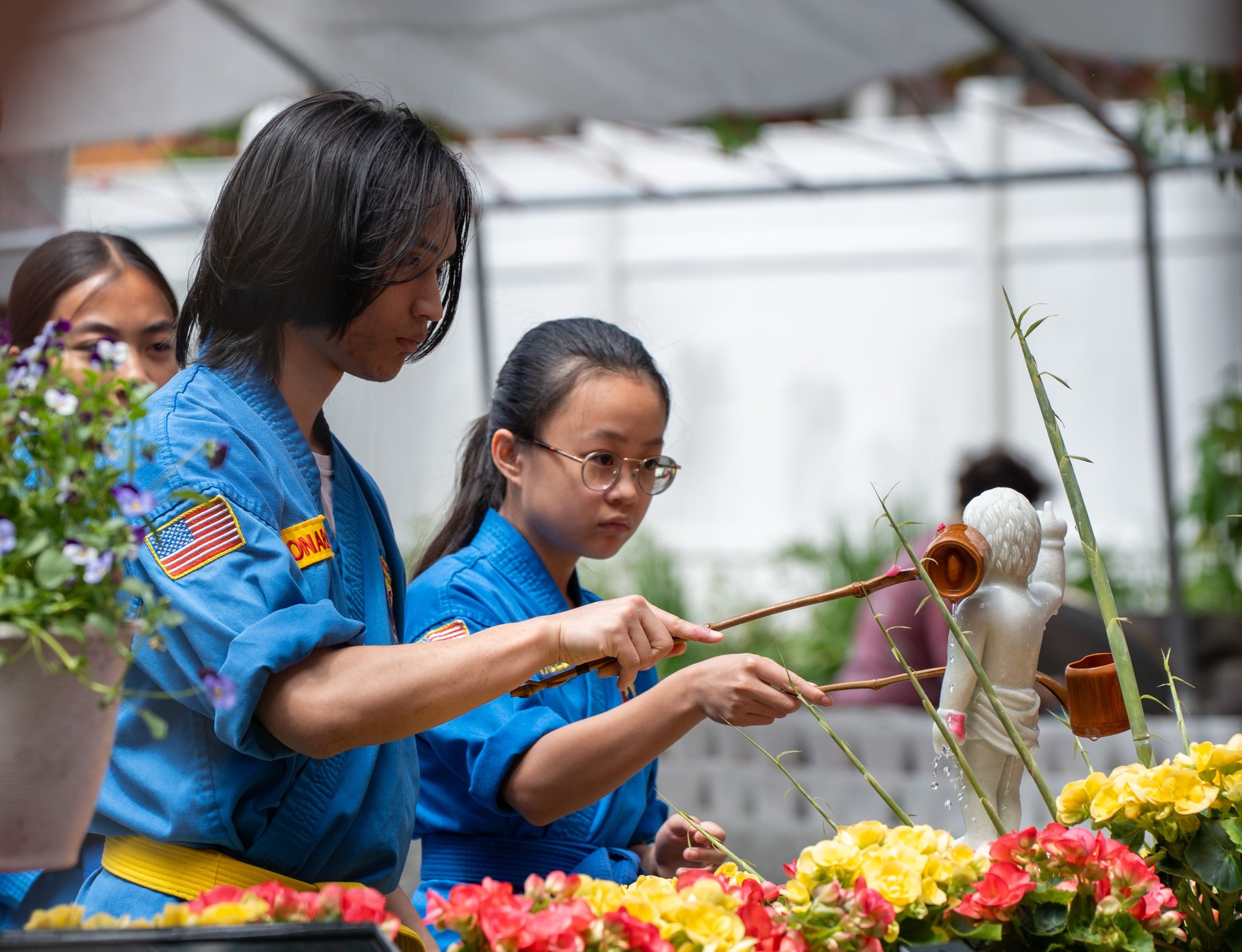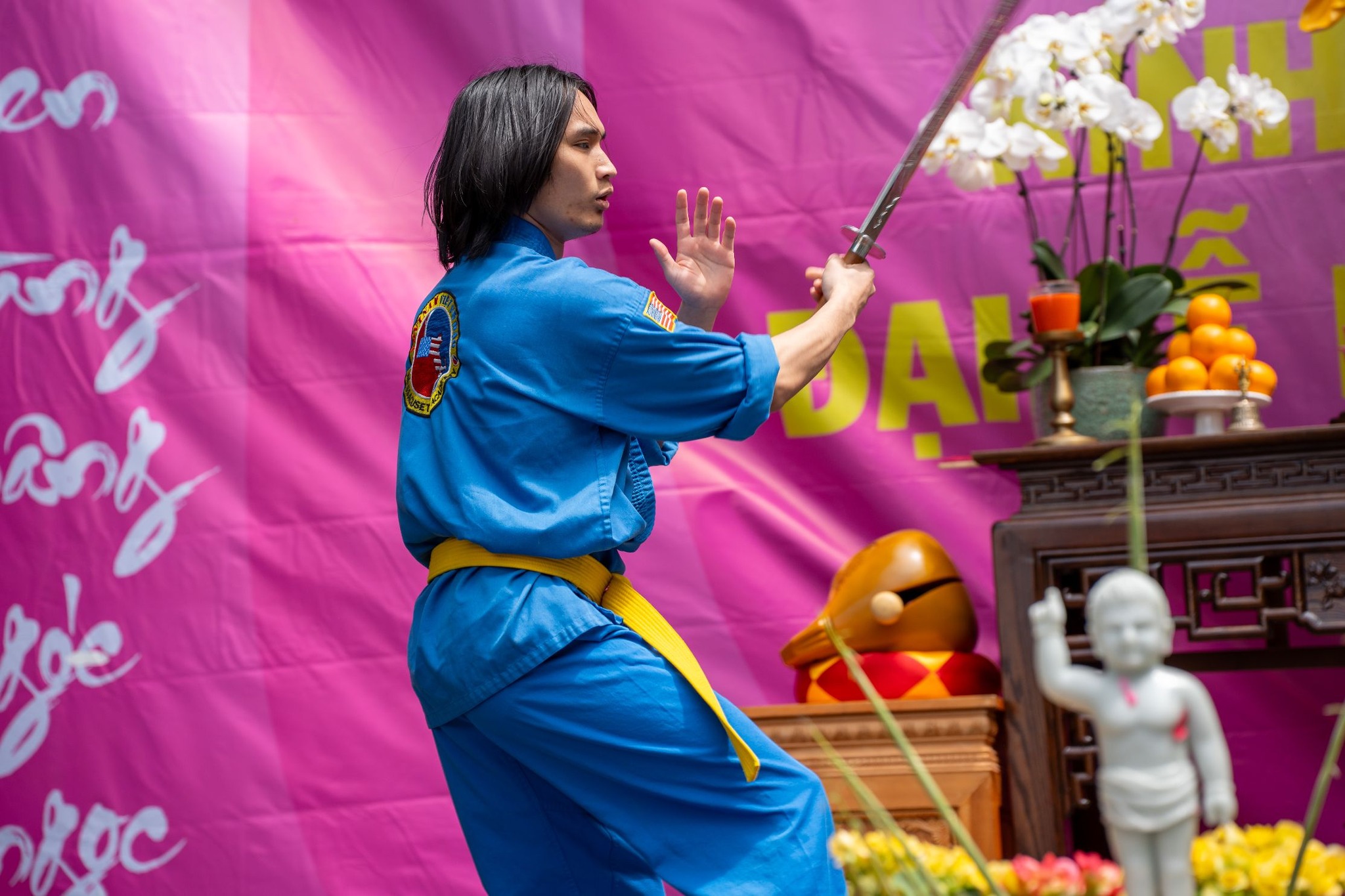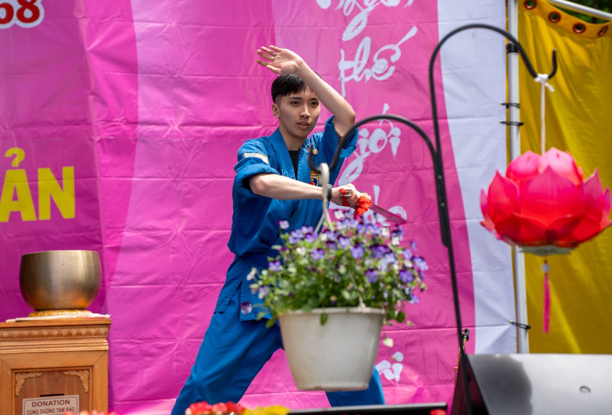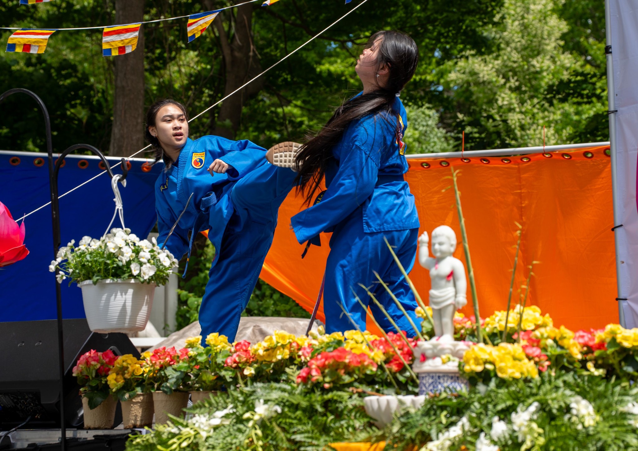 At the invitation of Venerable Nun Như Nguyệt, the abbot of Liên Hoa Pagoda in Randolph, Massachusetts, students from the Vovinam Việt Võ Đạo Massachusetts Academy came today to perform in celebration of the 2649th Buddha’s Birthday.